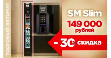 SM SLIM по специальной цене – 148 600 рублей –  только до 31 марта! Дарим скидку 30% на компактный торговый автомат SM SLIM. SM SLIM станет отличным дополнением к кофейне самообслуживания или мо...